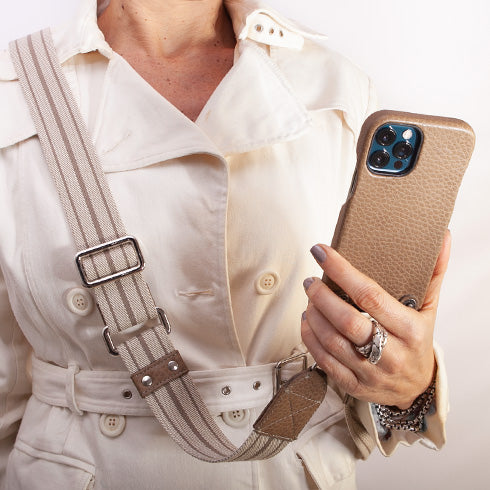 The new iPhone 12 Pro Max crossbody leather case creates an instantly handsome look with its adjustable and detachable shoulder strap, perfect for any on-the-go activity, it is fully handcrafted with buttery soft Vaja leather and ready to hang out with you. The Crossbody is our ultimate fashion leather case that will protect your gadget from accidental drops and scratches while keeping your hands free.