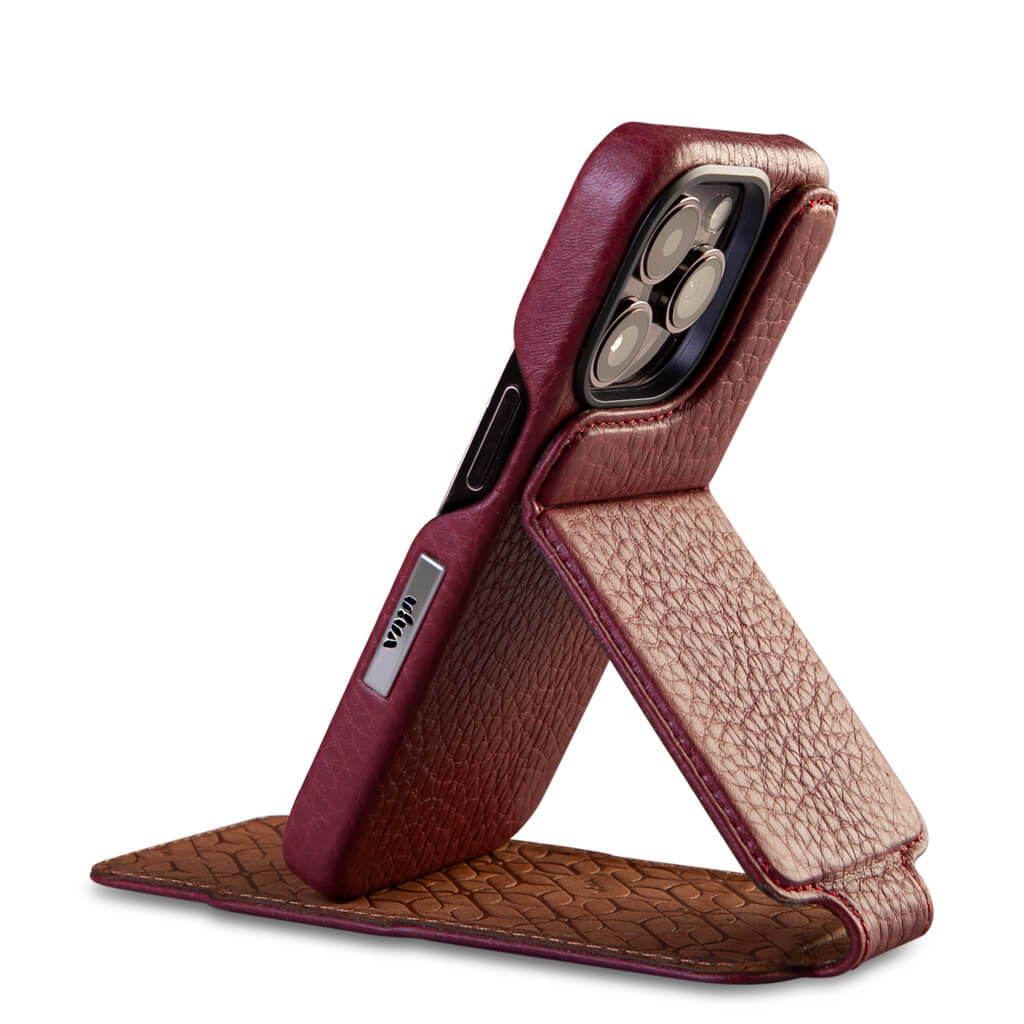 Introducing the V-Mag Top Wrap. A foldable leather add-on that gives your device extra protection. If you already have a V-Mag Case, just snap on the top wrap to turn it into a top iPhone 15 Pro leather case with Top screen protection and Magical hidden magnetic closure. Need to travel lighter? Easily detach it while on the go.