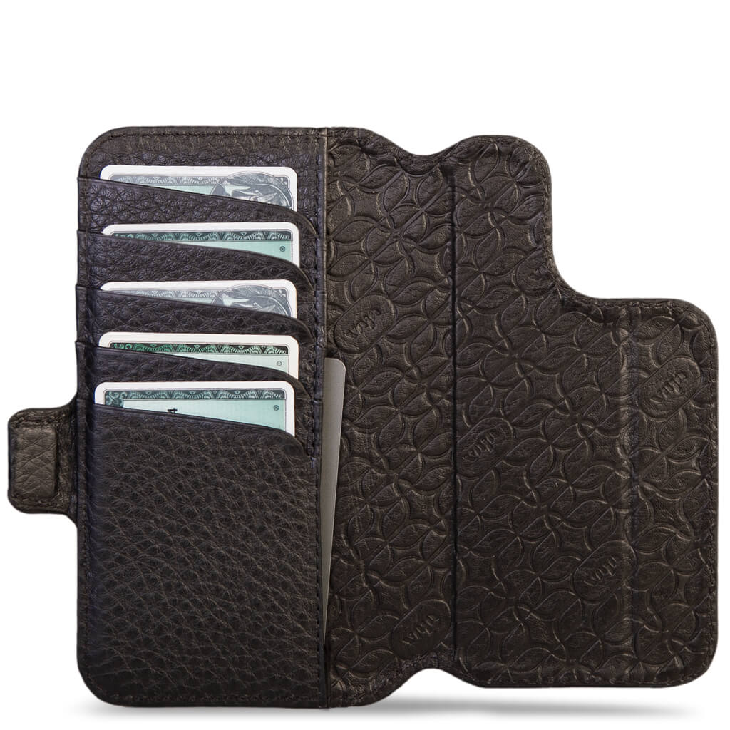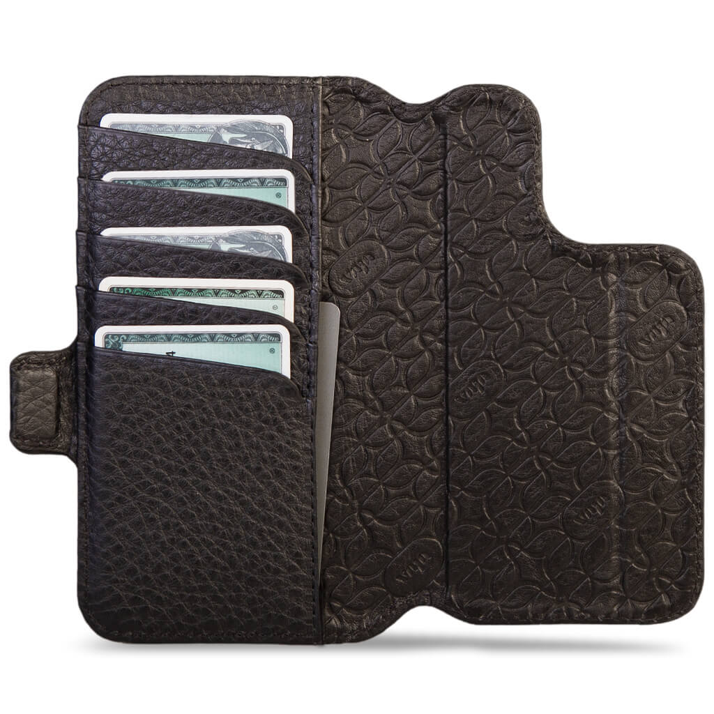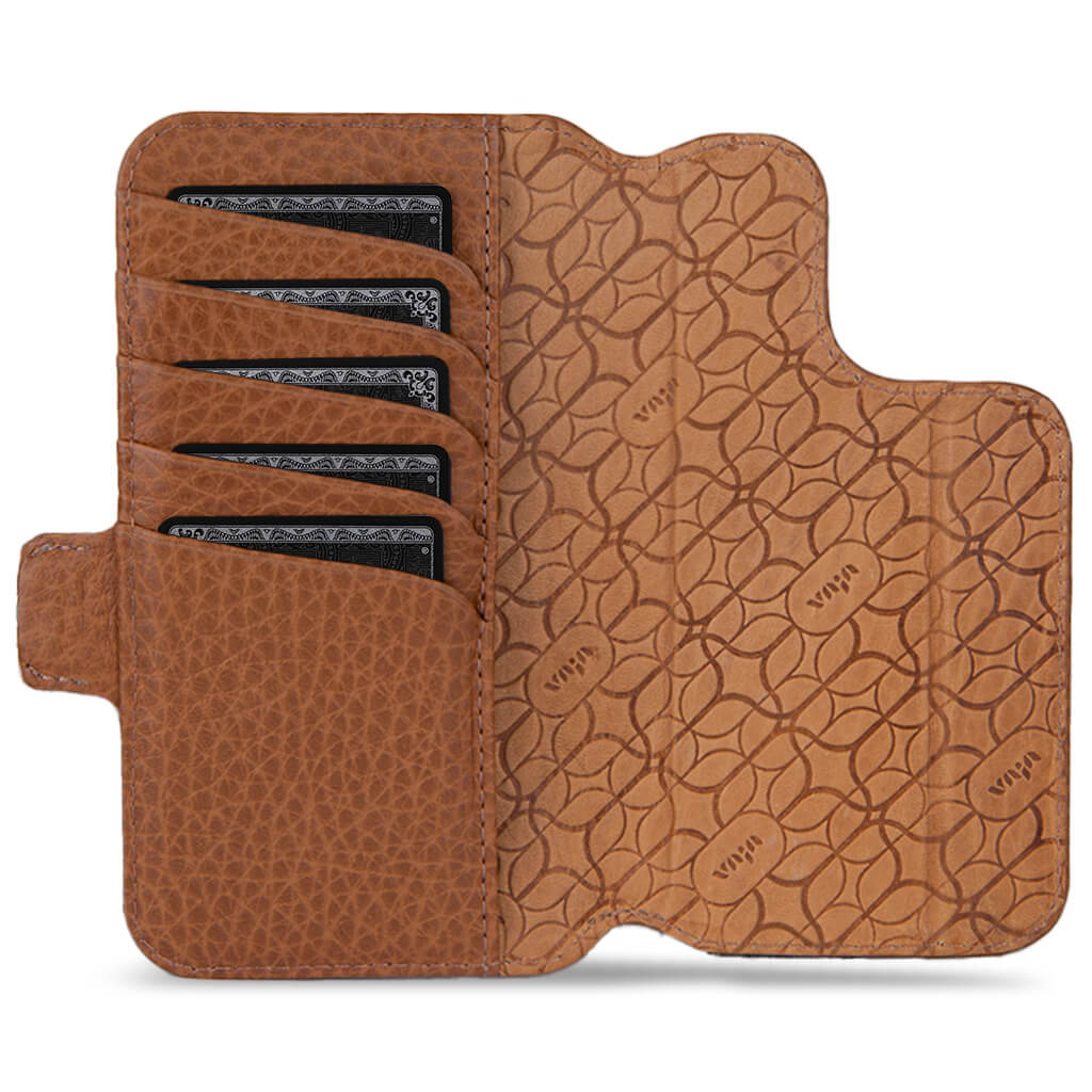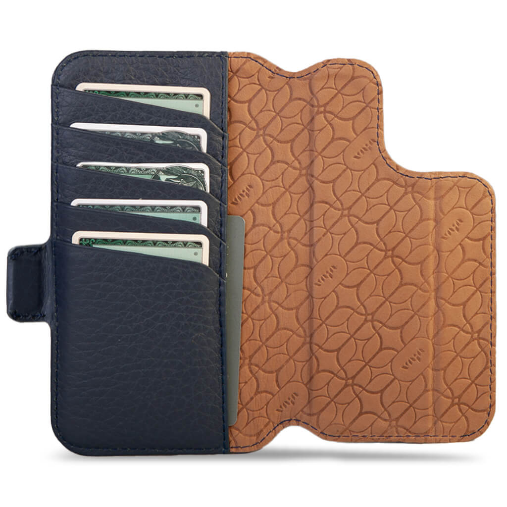 Meet the V-Mag Wallet Wrap. A leather accessory surpassing MagSafe's strength by six times. This V-Mag add-on transforms your V-Mag case into a wallet leather case for the iPhone 15 Pro Max. It effortlessly pairs via embedded magnets, safeguarding up to five cards with RFID protection (to avoid card skimming) , complemented by a hidden bill compartment and a magnetic closure to keep your essentials secured. This leather accessory not only turns your V-Mag case into an iPhone 15 Pro Max wallet leather case, but it's also a stand case. Keep your screen safe and your essentials housed in soft Patagonia leather.