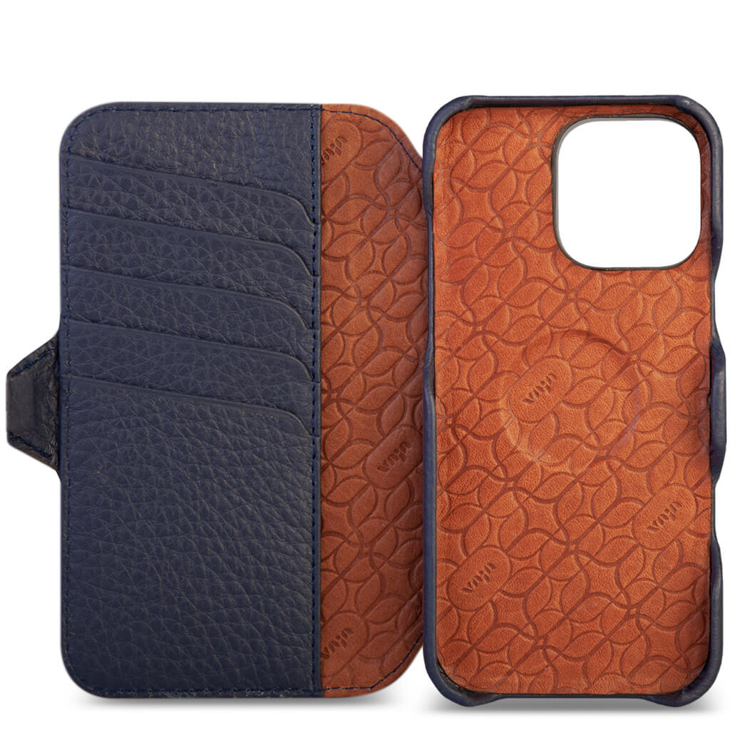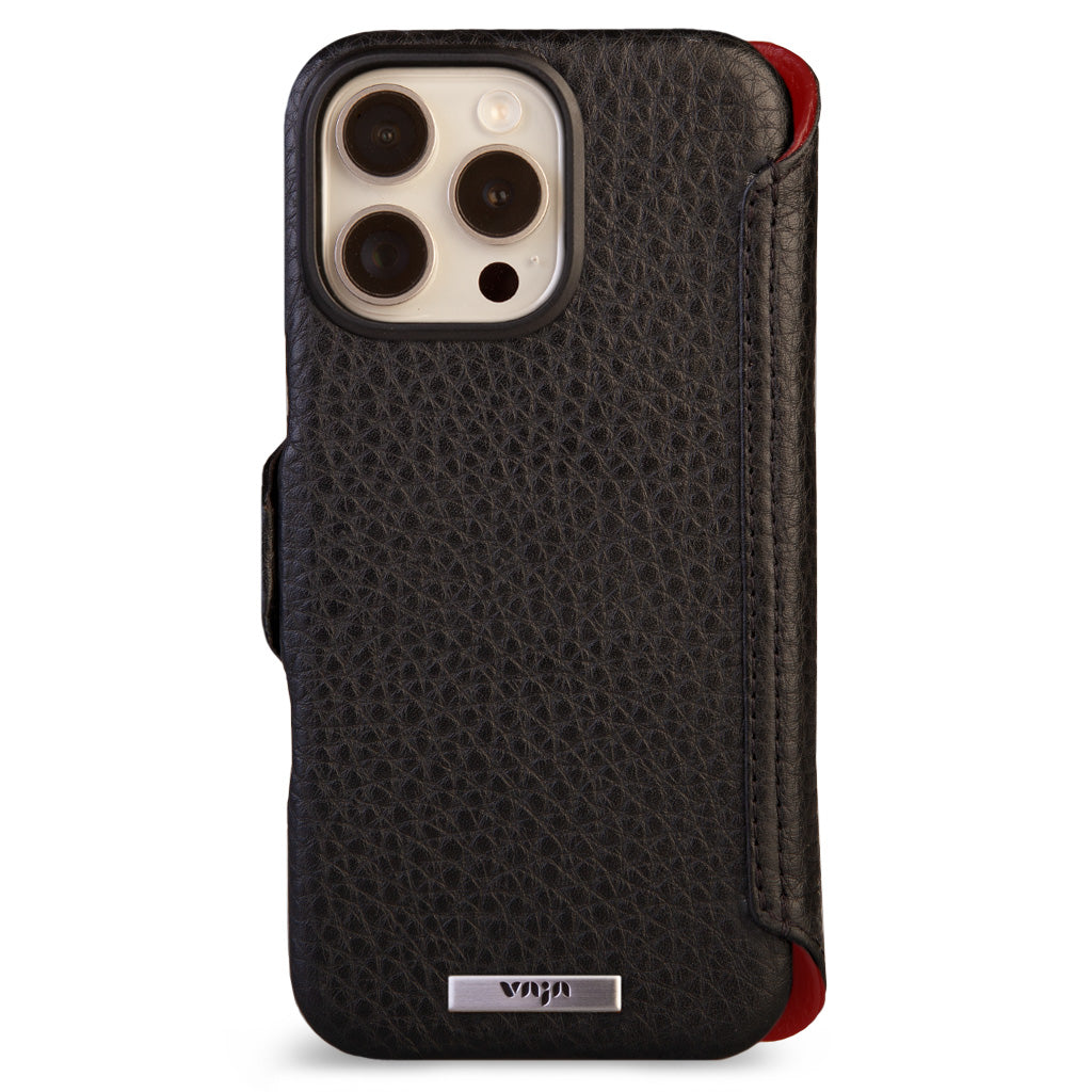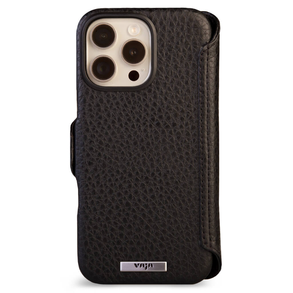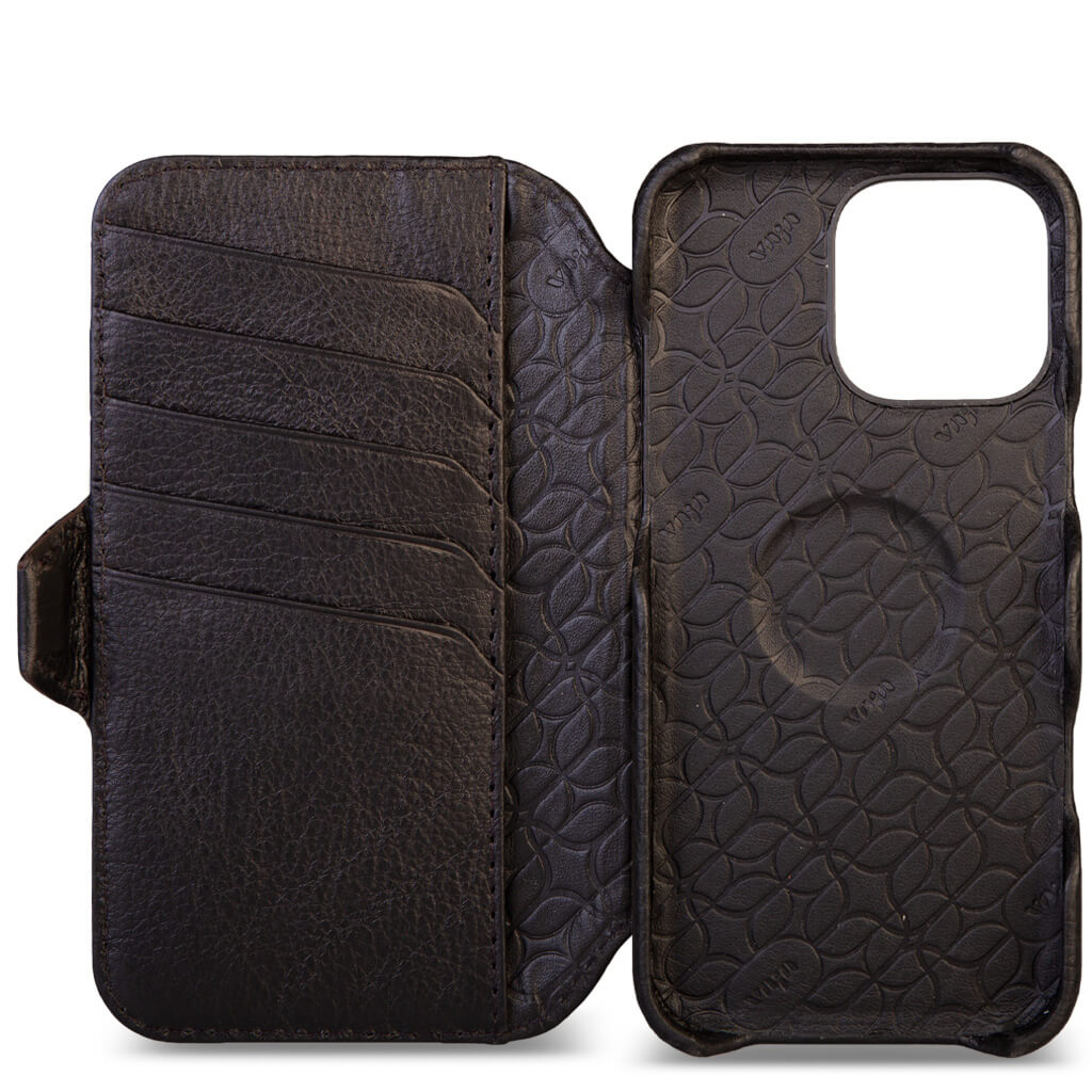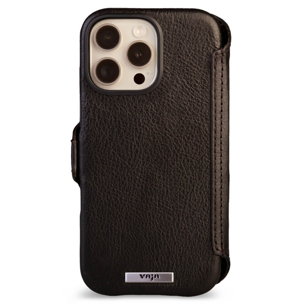 Historically beautiful and our long-time best seller, this iPhone 16 Pro Max wallet leather case offers unmatched screen protection, storage for 5 cards with RFID protection, and a discreet compartment for folded bills. Crafted with strong N52 rare earth magnets for seamless interaction with V-Mag accessories, each case is made using artisanal techniques and the finest Patagonia leathers in our Argentina workshop. For added safety, the wallet case features built-in magnets and is fully compatible with Magsafe accessories plus a new stronger magnetic closure that wont interfere with the Compass app.